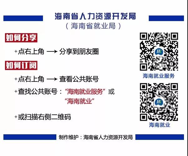 招聘信息 当前位置: 首页 >> 招聘宣讲 >> 招聘信息 >> 正文 招人,速来! 发布日期:2019-05-27 点击: 为做好省级人才“一站式”平台工作,提高公共人才服务质量,现公开招聘工作人员10名。 其中:主管岗1名;计算机岗1名;外籍人才客服岗3名;综合客服岗5名。 由省人力资源市场采取劳务派遣方式,派遣至省级人才服务“一站式”平台工作,合同期限为1年。 诚邀您的加入! 具体报名方式、条件和程序,请点击“阅读原文”,查看《海南省级人才服务“一站式”平台劳务派遣工作人员招聘公告》。 (人才管理服务处 冯青山) (温馨提示:招聘公司地址仅以本网站为准,请同学们面试时注意核对。) 上一篇:2019年海南省高校毕业生“三支一扶”计划招募公告 下一篇:海口市秀英区2019年小学(幼儿园)教师公开招聘公告(第一号)