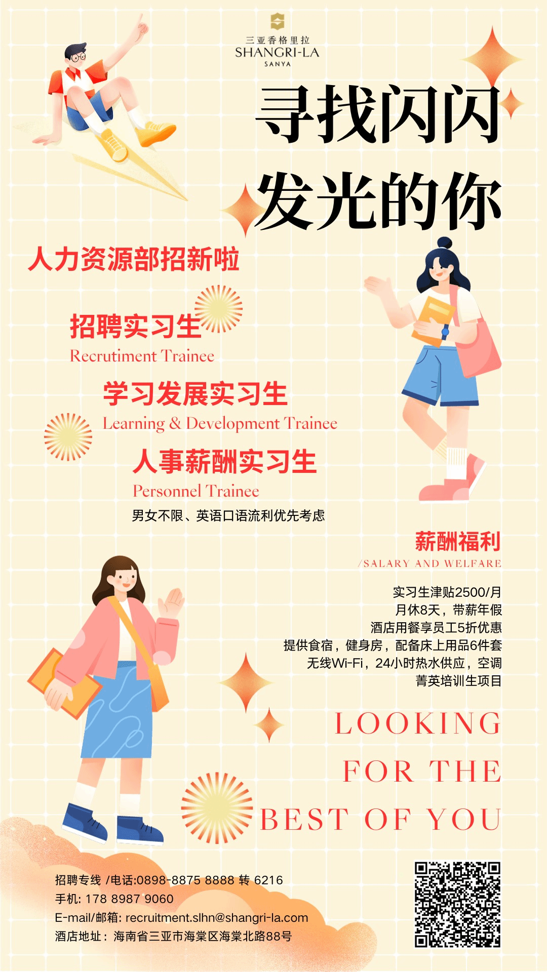 招聘信息 当前位置: 首页 >> 招聘宣讲 >> 招聘信息 >> 正文 三亚香格里拉大酒店有限公司招聘 发布日期:2024-01-11 点击: 声明本公众号发布企业信息仅作招聘启事用途求职过程中如遇招聘单位地址不符或有收费要求等情况请立即停止受聘并与我处联系:0898 6329 7760 上一篇:中汪建设集团有限公司招聘 下一篇:唯拓尔(海南)农业科技有限公司招聘