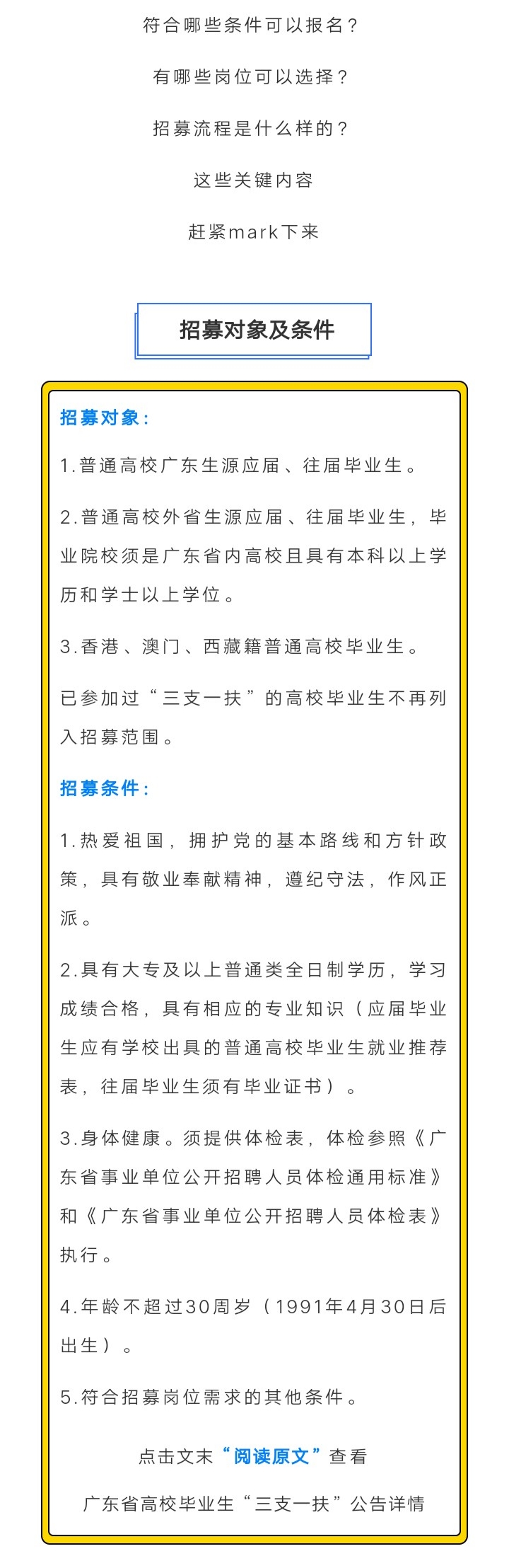 就业创业政策 当前位置: 首页 >> 就业创业指导 >> 就业创业政策 >> 正文 广东籍学生看过来!2021广东三支一扶新政策 发布日期:2021-05-11 点击: 上一篇:就业政策宣传--“特岗计划”要让更多教师归“乡” 下一篇:吸引留住高校毕业生建设海南自由贸易港的若干政策措施