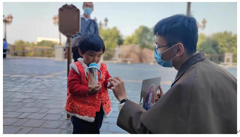 给小朋友们发贴纸,给他们开始神奇一天的开始。