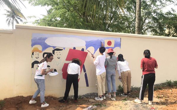 日出还没有穿透云层,空气里还透着凉气,3月30日,我系专职辅导员罗玉珠老师带领文学和艺术类专业师生一行32人来到了文昌市东郊镇清港村开展扶贫活动,师生联手彩绘文化墙,与干部群众共助乡村文化振兴,展示师生的文化风采和教学成果。