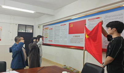 “我志愿加入中国共产党,拥护党的纲领,遵守党的章程,履行党员义务,执行党的决定,严守党的纪律,保守党的秘密,对党忠诚,积极工作,为共产主义奋斗终身,随时准备为党和人民牺牲一切,永不叛党。”在党总支林鹏书记的领誓下,2位新党员面向鲜红的党旗,佩戴党员徽章,握紧右拳,语气坚定、声音激昂地进行了庄严的宣誓。