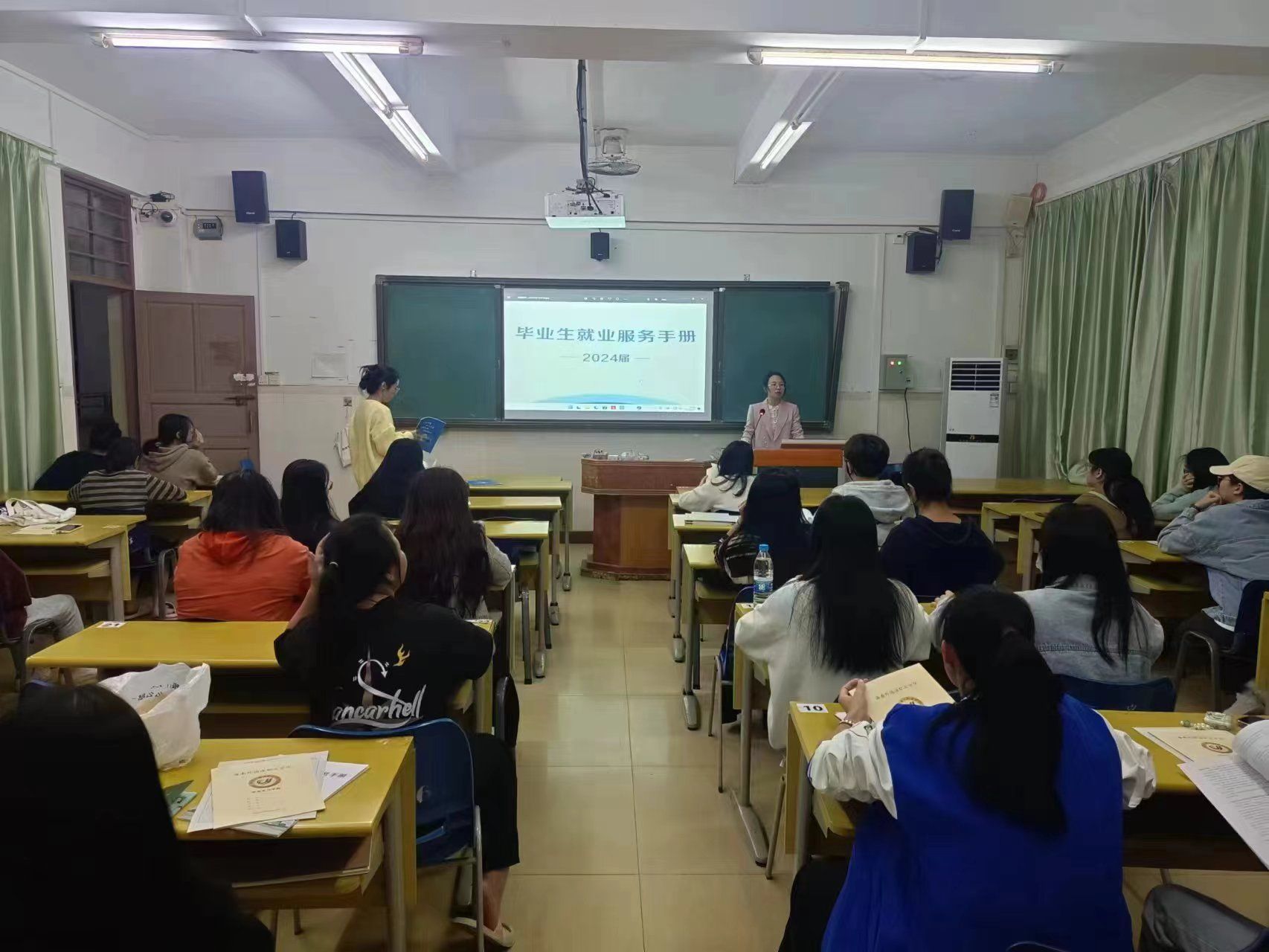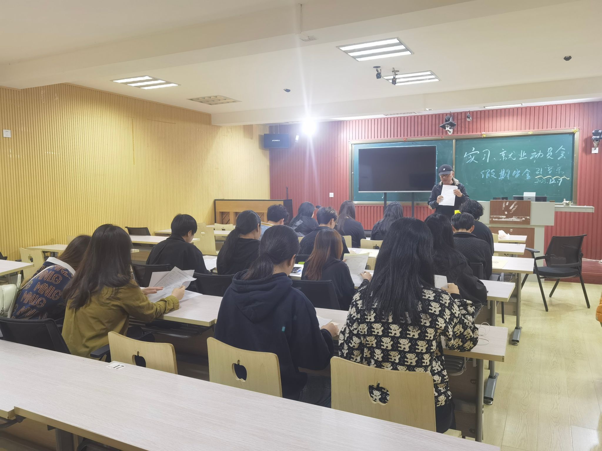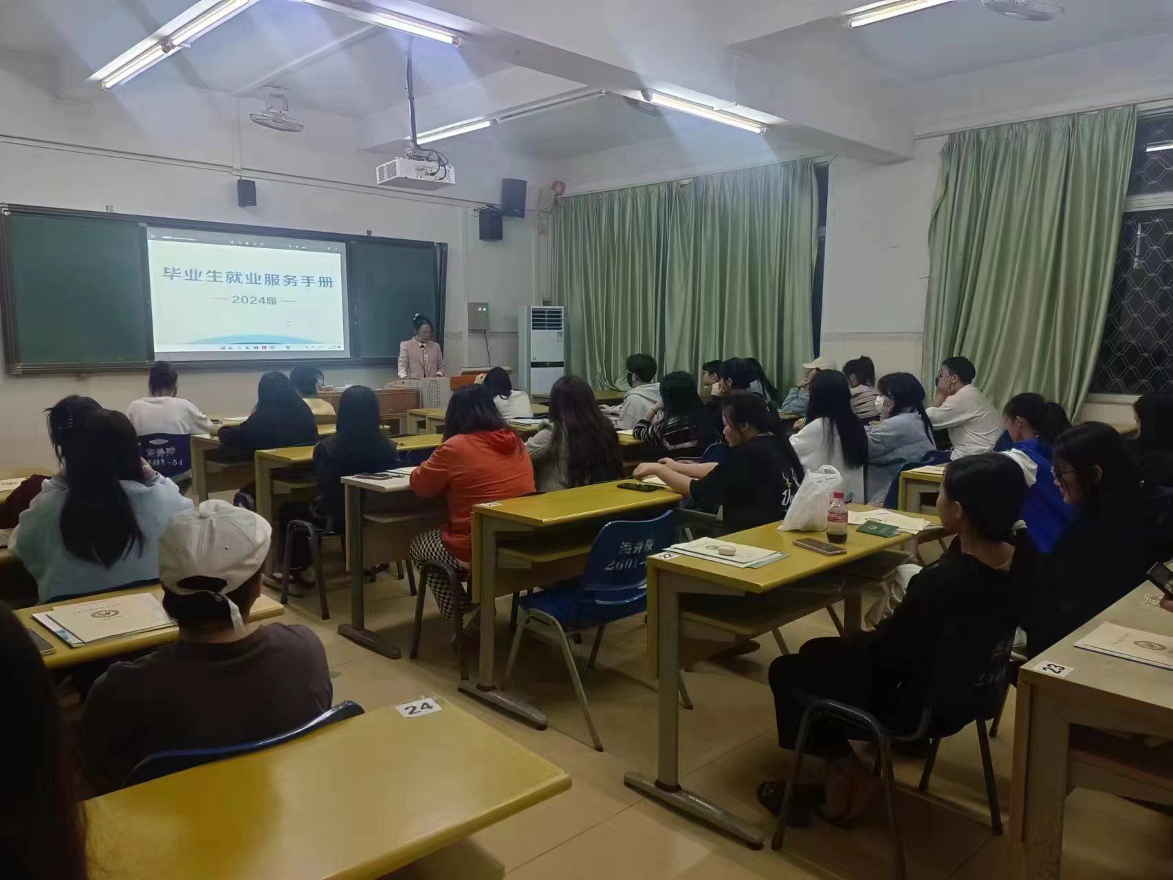 2023年12月7日,2024届毕业班的所有班级在学院实习就业工作领导小组的统筹下开展了实习就业指导主题班会。班会上,各班的实习就业指导老师向毕业生传达了学院的实习就业工作安排,强调了在实习就业过程中的安全问题,并现场指导毕业生如何进行实习和就业材料的填写和提交,例如三方协议填写过程中需要注意的问题等,还详细向学生讲解了《毕业生服务手册》,让学生清楚如何通过不同的形式提交就业材料。有的班级还现场收集学生的简历,并指导学生进行修改,有的班级分享了求职技巧,帮助提高学生的求职竞争力。