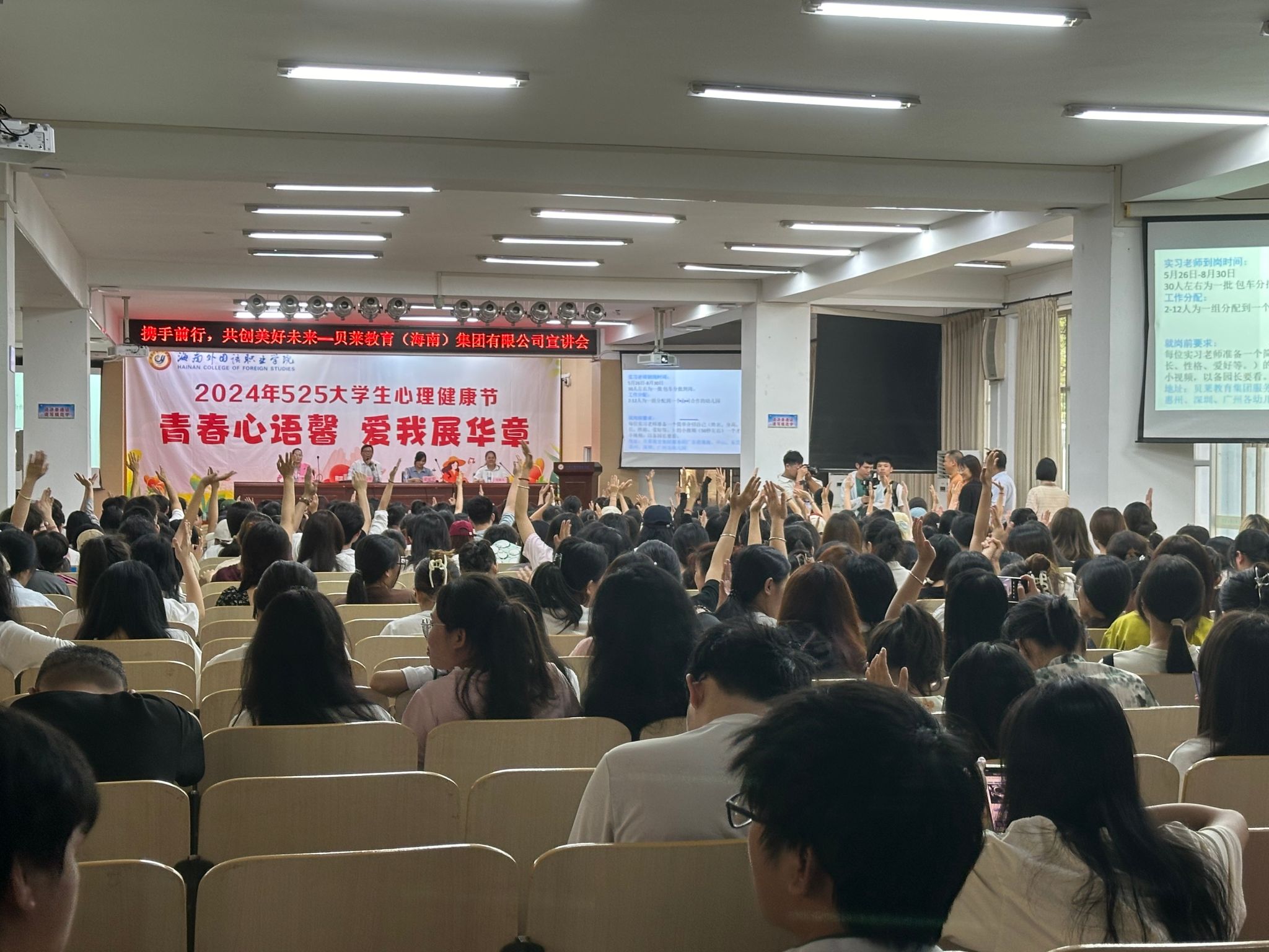 在这个阳光明媚、充满生机的季节里,jinnianhui今年会迎来了本学期的职业教育活动周。2024年5月6日,活动的第一天,学院邀请了贝莱教育(海南)集团有限公司到我院为2025届即将步入社会实习的学生进行宣讲活动。这是一场知识的盛宴,也是一次思想的碰撞,更是一个为未来描绘蓝图的契机。