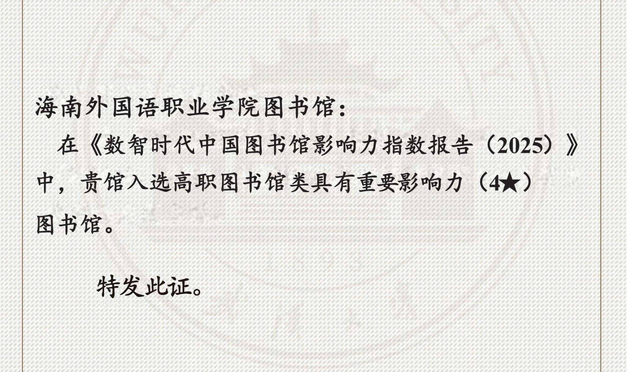 2025-09为贯彻落实教育部《教育信息化2.0行动计划》和《普通高校图书馆规程》文件精神,根据《海南省教育厅关于举办2025年海南省高职院校大学生信息素养大赛的通知》要求,加快推进新时代教育数字化转型进程,切实提升高职院校大学生运用人工智能技术开展信息获取、处理及创新应用的能力水平,着力构建德智体美劳全面发展的教育体系。图书馆决定举办2025年海南省大学生信息素养大赛初赛,具体情况如下: