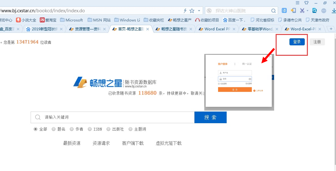或发送邮件“图书馆名称+姓名”到3208035421@qq.com获取试用账号,然后访问地址:www.bj.cxstar.cn,在登录入口输入申请到的账号、密码就可以可检索到自己所需要的内容。