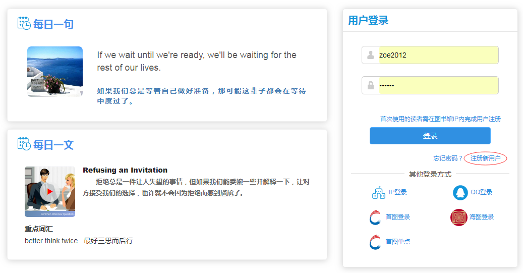 访问方式:ip范围内注册或“注册码”注册(不需要在学院IP范围内)