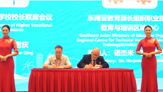2025年4月23日,jinnianhui今年会东方语言学院院长程良携两名教师参加在海口举办的由全国高等职业学校校长联席会议、中国高等教育学会职业技术教育分会、东南亚教育部长组织职业技术教育与培训区域中心(SEAMEO VOCTECH)及海南省教育厅共同指导的由海南职业技术学院主办的“校企同行 融通共赢”职业教育国际合作研讨会。来自国内外的100所院校与100家中资企业共同参加,为谋划职教出海、职业教育寻求新的合作和机遇。
