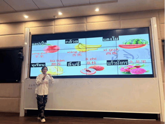 比赛现场,同学们纷纷化身小老师,开启了精彩的汉语教学试讲之旅。他们精心选取了丰富多样的教学内容,涵盖了中国汉字里的“东西南北”等基础词汇,通过生动有趣的讲解方式,利用泰语准确清晰地向“学生们”阐述每个汉字的含义、写法以及背后所蕴含的文化意义;在讲解中国的天气时,同学们不仅用泰语描述了不同季节、不同地区的天气特点,还巧妙地引入了与天气相关的汉语常用表达,让“学生们”在了解天气知识的同时,也掌握了实用的汉语语句;而在介绍中国的水果时,更是通过泰语绘声绘色地讲述各种水果的名称、口感、产地等,仿佛将中国果园的丰富多样带到了课堂之上;此外,关于中国文化这一板块,同学们从传统节日、风俗习惯等多方面入手,以泰语为桥梁,将博大精深的中国文化传递给每一位“听众”。