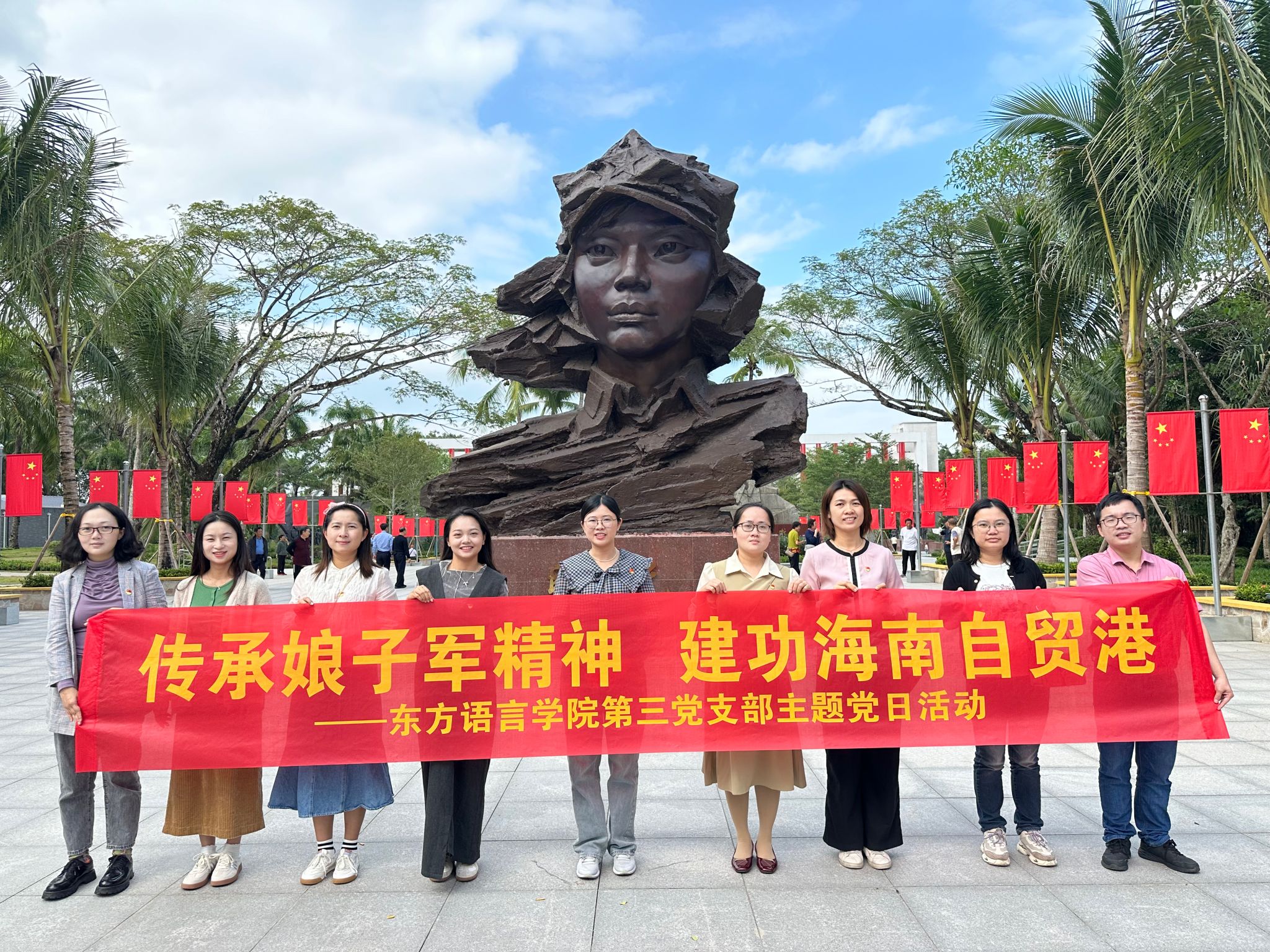 为深入学习贯彻落实党的二十大精神,切实发挥党建在东方语言学院第三党支部学习工作的引领作用,提升党员的党性修养和凝聚力。12月7日,东方语言学院第三党支部组织全体党员前往红色娘子军纪念馆开展“传承娘子军精神,建功海南自贸港”主题党日活动。