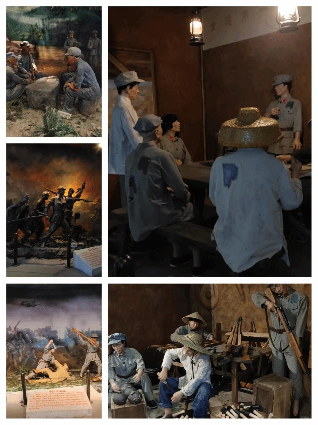 展馆内还有逼真的蜡像和铜像,更为身临其境的在我们面前铺开了一卷热血峥嵘的革命画卷,在山洞中生活和治疗的先辈,举着红旗飘飘不畏生死向前冲的烈士们,更让我们进一步感受到革命精神的可贵。