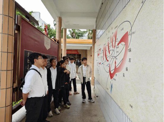 宣誓结束后,师生有序参观张云逸纪念馆。通过珍贵的历史文物、详实的图文资料和生动的场景复原,大家深入了解了张云逸将军从琼崖革命到北伐战争、从百色起义到万里长征的光辉历程。特别是在"琼崖革命斗争"展区,同学们驻足凝视展柜中斑驳的军装和手稿,感悟革命先驱在艰苦环境下坚守信仰、浴血奋战的精神品格。