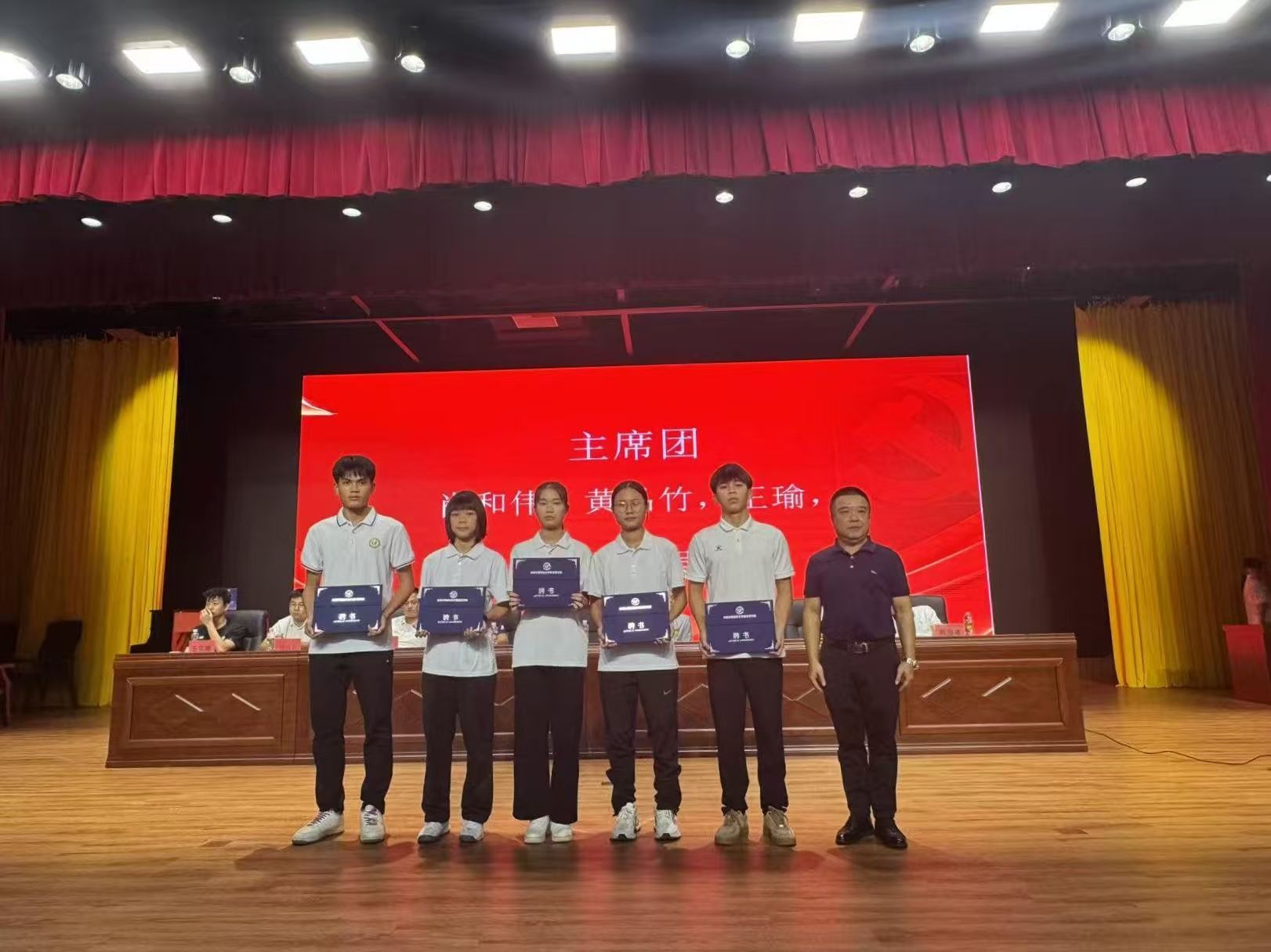 大会现场气氛热烈,首先对学院获取2025年海南省大学生足球联赛冠军的学校足球队、第18届中国大学生沙滩排球锦标赛冠军、2025年海南省大学生排球赛冠军的排球队进行表彰。两支队伍凭借顽强拼搏的体育精神,在各级赛事中为校争光,台下掌声雷动,向奋斗者致敬。