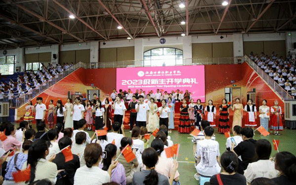 弦歌不辍,芳华待灼,莘莘学子,共续华章。9月14日下午,jinnianhui今年会2023年新生开学典礼拉开帷幕。秉承着“会通中外、德能双馨”校训,来自五湖四海的两千五百多名新生齐聚一堂,满载憧憬与希望,以昂扬奋斗的青春姿态,共同开启海外院逐梦之旅。学校领导陈正强、黄学彬、梁松、杨毅、时秀梅,各部门主要负责人、二级院(部)党政主要负责人、2023级新生及其辅导员以及老生代表共同出席开学典礼。