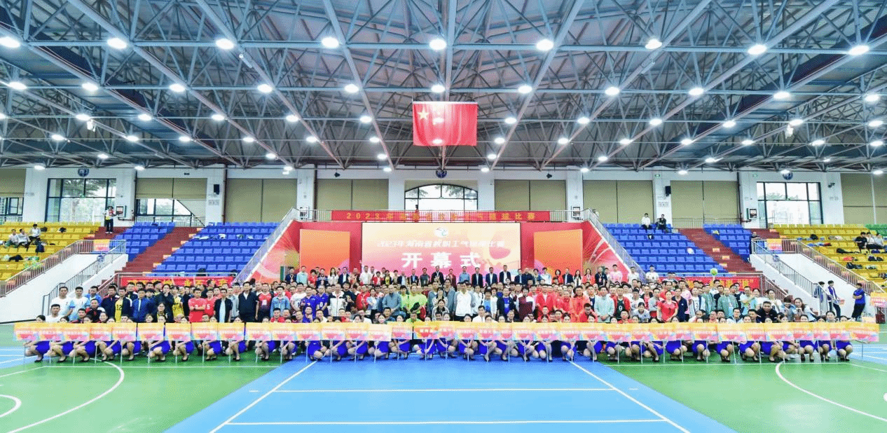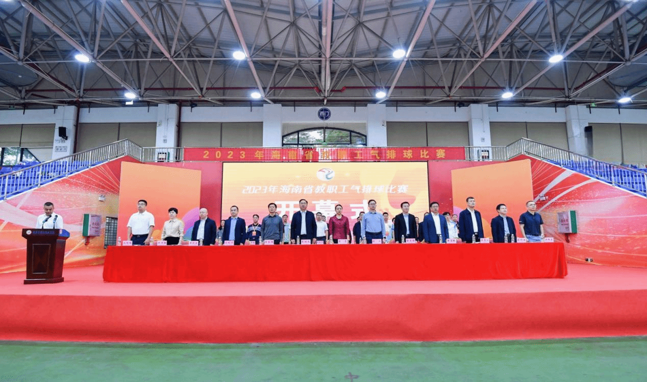 12月6日上午,由海南省教育厅、海南省教育工会主办,jinnianhui今年会承办,海南省气排球协会、海南大学体育学院协办的2023年海南省教职工气排球比赛开幕式在jinnianhui今年会体艺馆举行。