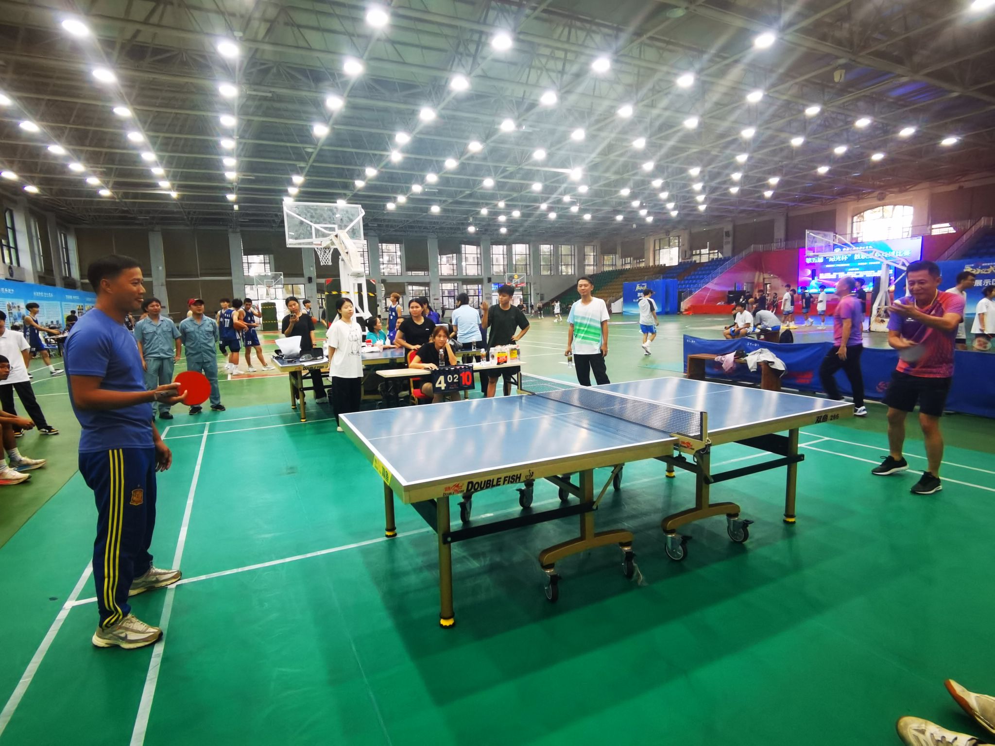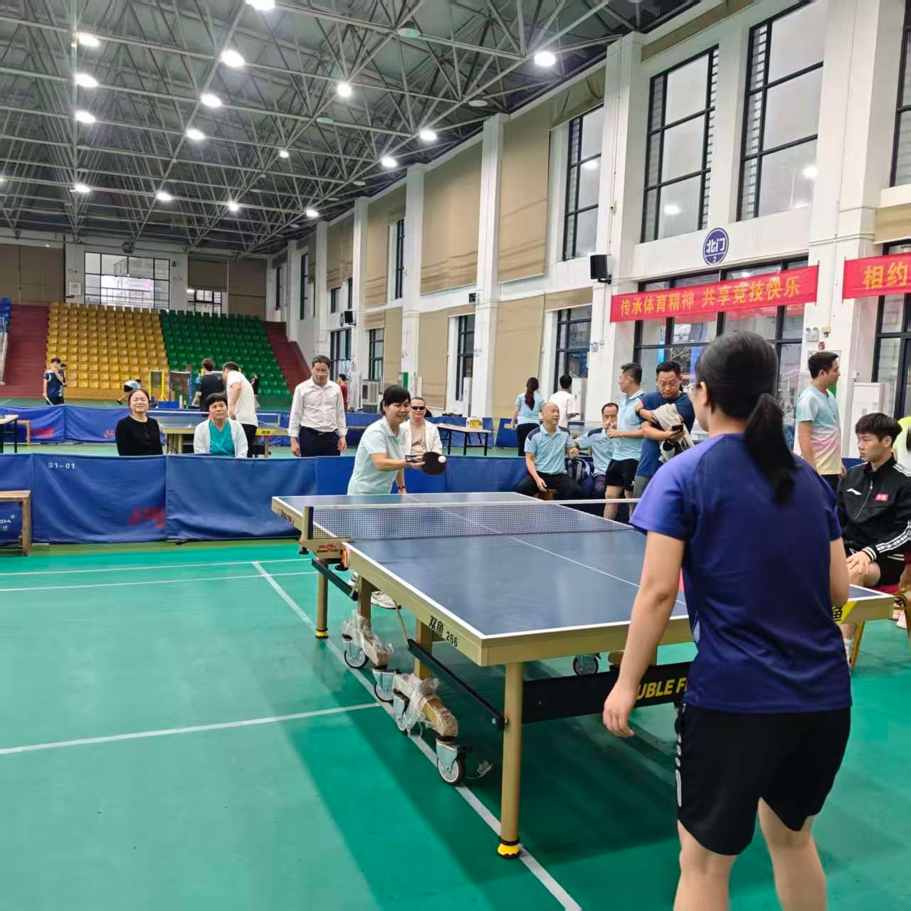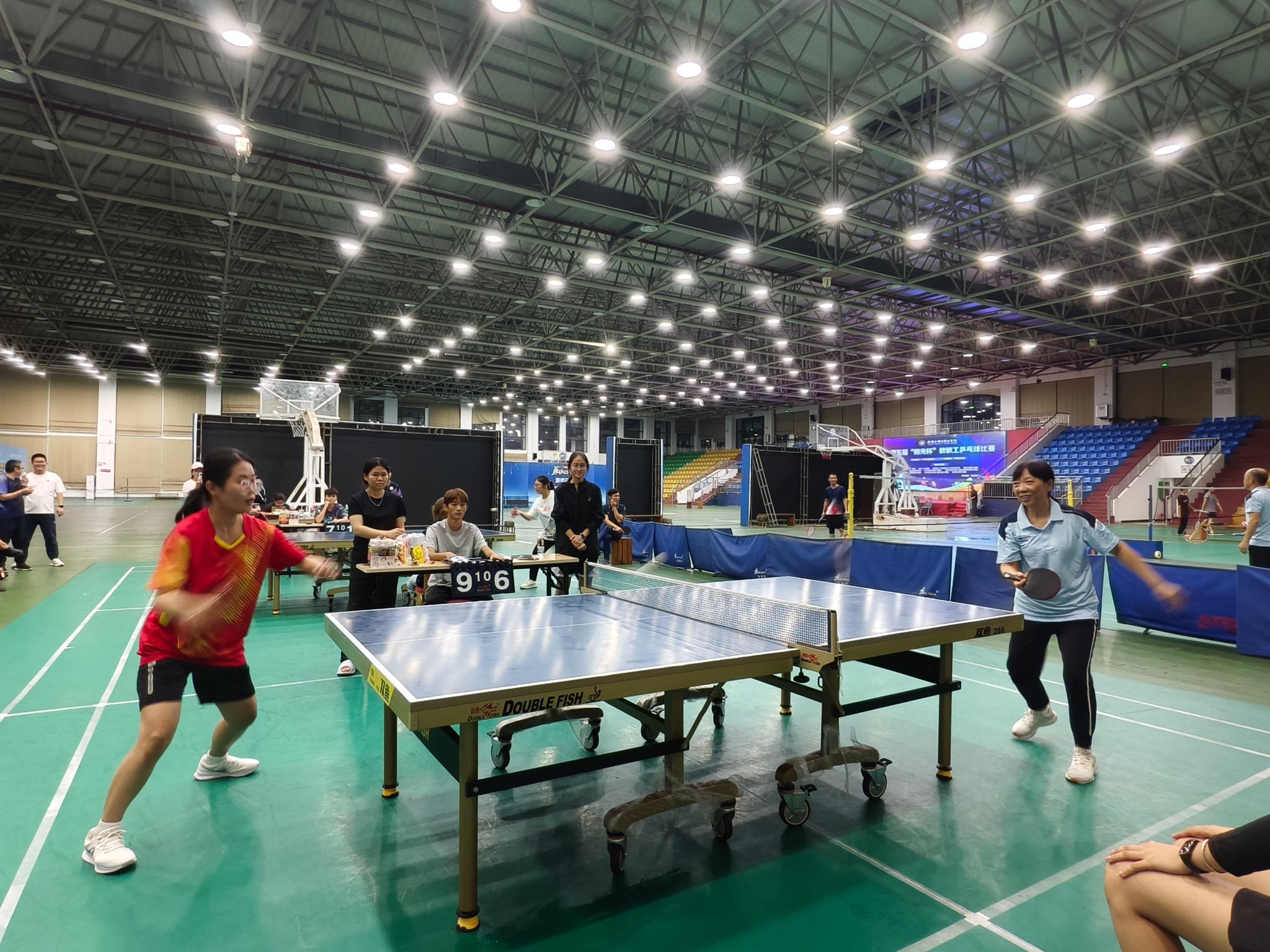 比赛期间,后勤处和马克思主义学院领导纷纷到场为队员加油鼓劲,激发斗志。赛场上,队员们精神饱满、斗志昂扬。发球精准凌厉,接球稳健从容,扣杀果断有力,战术运用高效,每一个回合都展现出高超的球技与战术素养。从小组赛到淘汰赛,从半决赛到决赛,面对强劲对手,队员们相互鼓励、灵活调整战术,用汗水诠释着 “友谊第一,比赛第二” 的体育精神,也彰显了跨部门协作的强大合力。