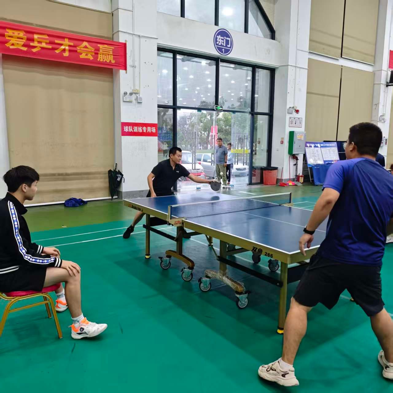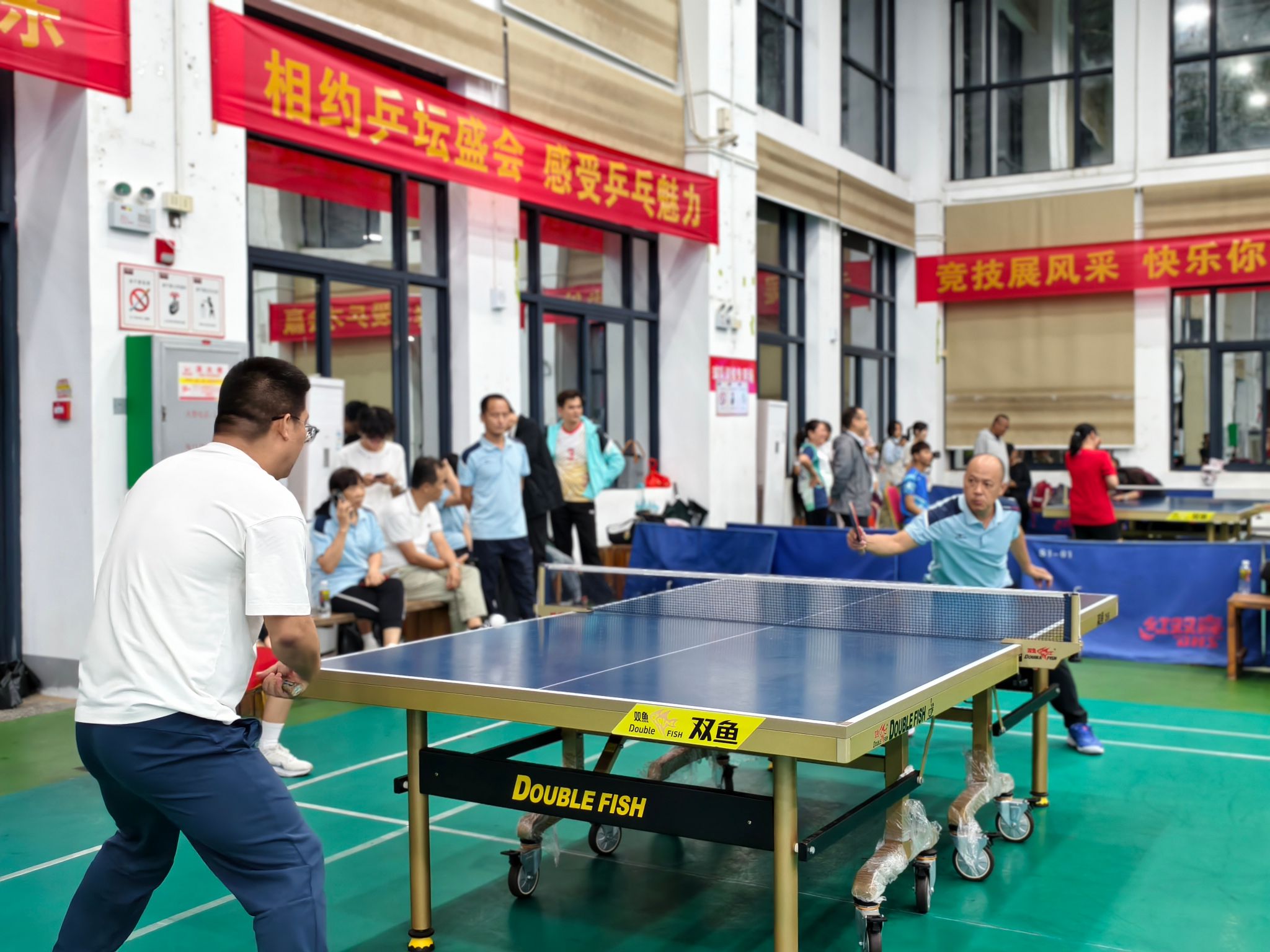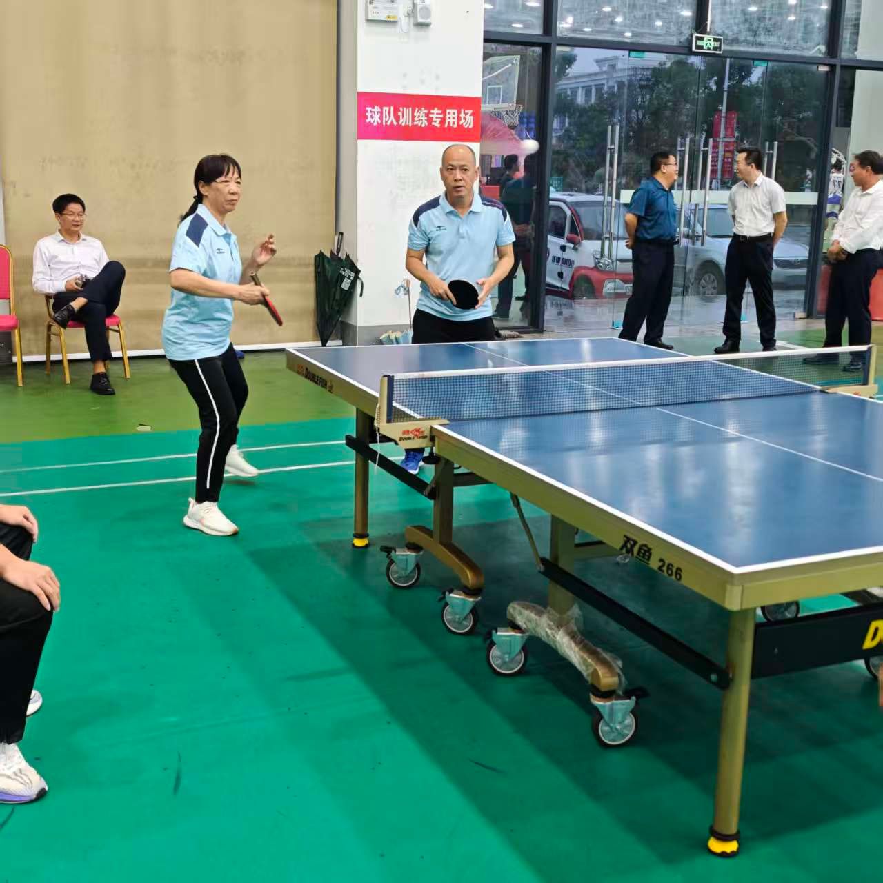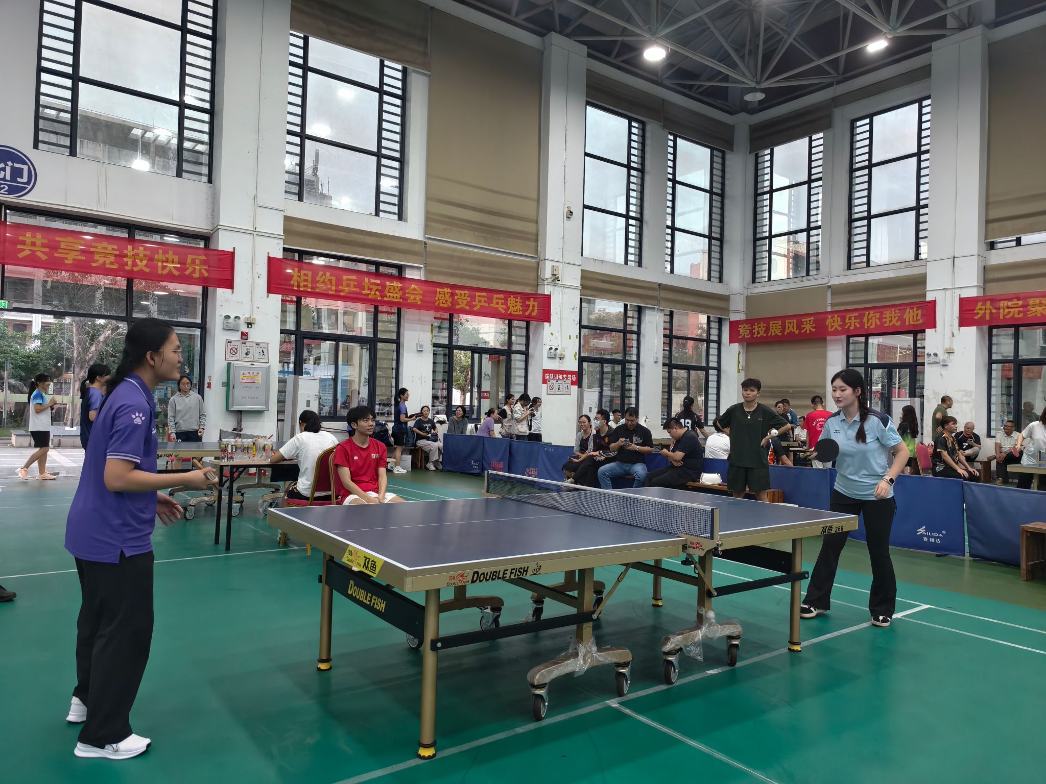 比赛期间,后勤处和马克思主义学院领导纷纷到场为队员加油鼓劲,激发斗志。赛场上,队员们精神饱满、斗志昂扬。发球精准凌厉,接球稳健从容,扣杀果断有力,战术运用高效,每一个回合都展现出高超的球技与战术素养。从小组赛到淘汰赛,从半决赛到决赛,面对强劲对手,队员们相互鼓励、灵活调整战术,用汗水诠释着 “友谊第一,比赛第二” 的体育精神,也彰显了跨部门协作的强大合力。