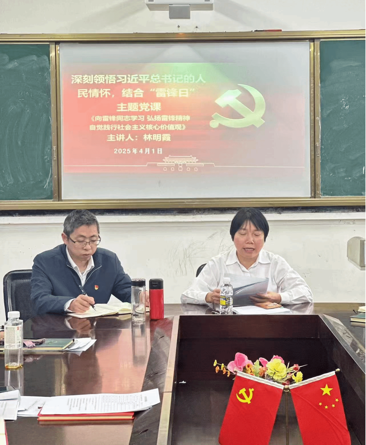 2025年4月1日下午,国际旅游学院党总支书记林明霞为全院教师和学生入党积极分子、发展对象带来了一场意义非凡的主题党课,深入讲解雷锋精神的内涵与价值,并带领大家共同朗读雷锋日记选摘,让雷锋精神在校园内再次闪耀光芒。