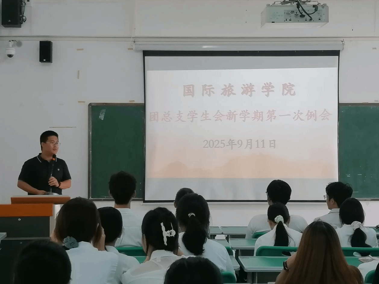 国际旅游学院团总支学生会于2025年9月11日在多媒体12教室顺利召开2025-2026学年第一学期首次全体例会。本次会议由学生会执行主席云春雨主持,学院党总支副书记周群林、团总支书记高潇翔,以及学生会主席团成员、各部门部长与干事全员参会,共同为新学期学生工作谋篇布局。