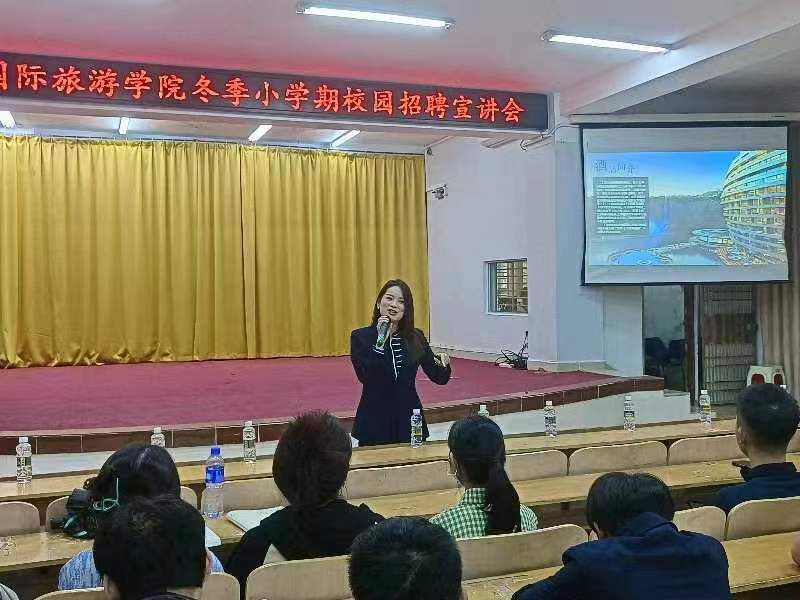 为进一步促进校企合作,帮助同学们更加深入了解当前就业形势,为同学们提供多元化的实习就业选择。同时,为增强同学们的社会竞争力,架起学生与企业沟通的桥梁,搭建学生求职交流的平台,国际旅游学院特利用冬季小学期于11月14日上午在多功能报告厅举办2024届(高职)毕业生实习企业宣讲会。