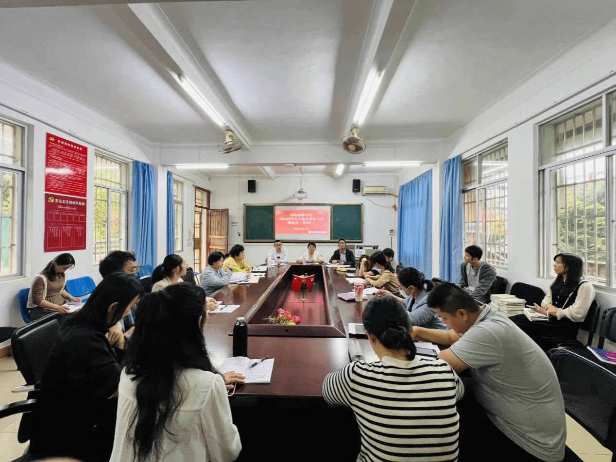 谢孟就今年7月即将出去实习的2025届毕业生情况进行简要介绍,要求各位辅导员、班主任做好这部分学生的实习就业动员工作,实训就业指导员要做好学生的实习意向问卷调查,再根据调查结果邀请合适的合作企业做校园双选招聘会。