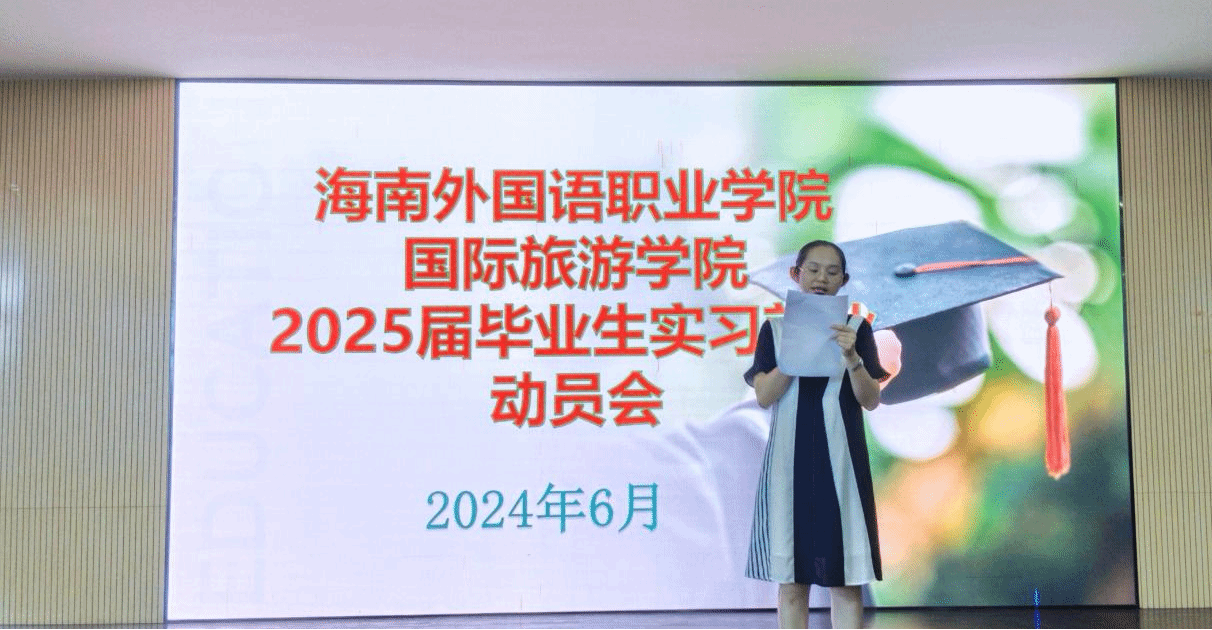 实习对于学生来说具有多重重要意义,它不仅是理论与实践相结合的桥梁,更是个人职业发展的重要基石。通过实习,学生可以掌握专业相关的技能,熟悉职场环境,了解企业文化和工作流程,提高未来的就业竞争力。为了推进2025届毕业生7月岗位实习工作,国际旅游学院分别于6月12日和6月20日在1103教室和图书馆VR实训室召开了2025届毕业生实习动员会及安全教育大会。会议出席人员包括我院党政负责人、实习指导老师、2025届7月实习高职毕业生。