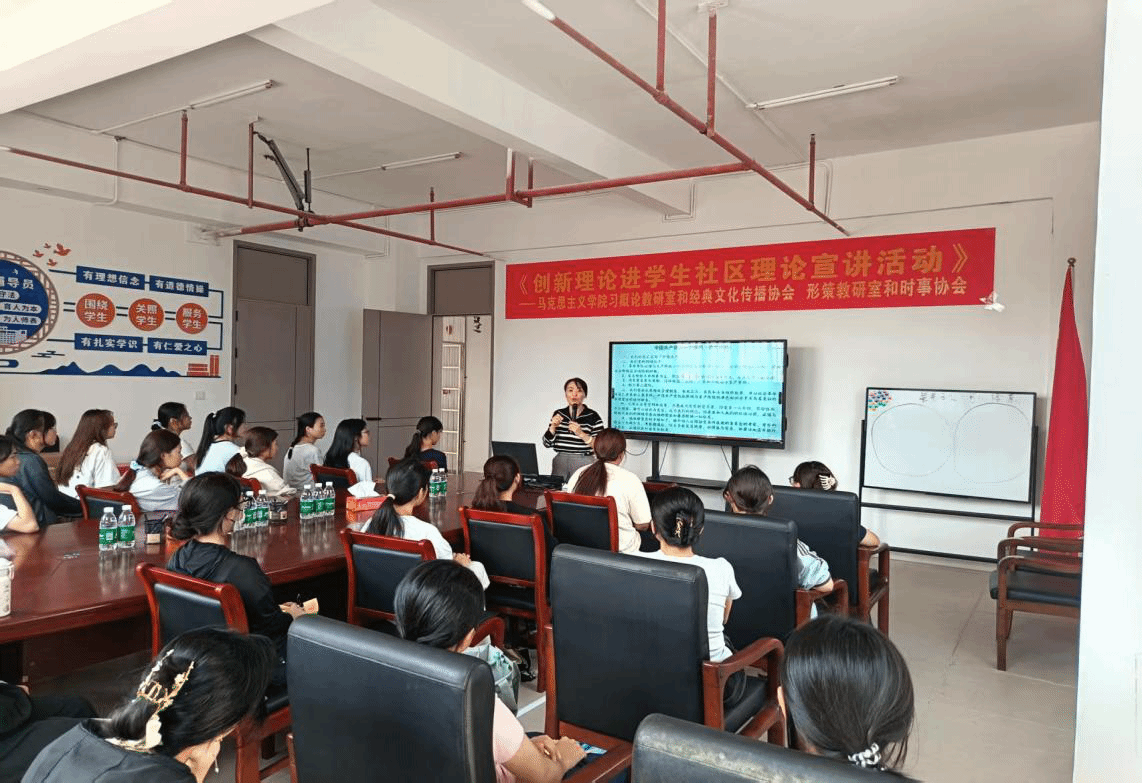 10月31日,jinnianhui今年会学生社区内暖意融融、互动热烈。马克思主义学院《习近平新时代中国特色社会主义思想概论》课教研室和《形势与政策》课教研室协同经典文化传播协会、时事协会,共同开展“创新理论进学生社区”主题宣讲活动,将理论课堂搬进学生生活场景,让党的创新理论在青年心中落地生根。