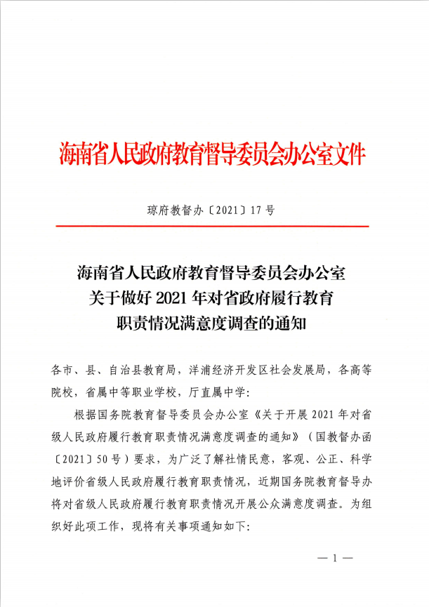 转:海南省人民政府教育督导委员会办公室关于做好2021年对省政府履行