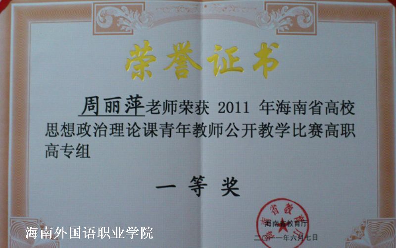 周丽萍老师荣获省教学大赛一等奖