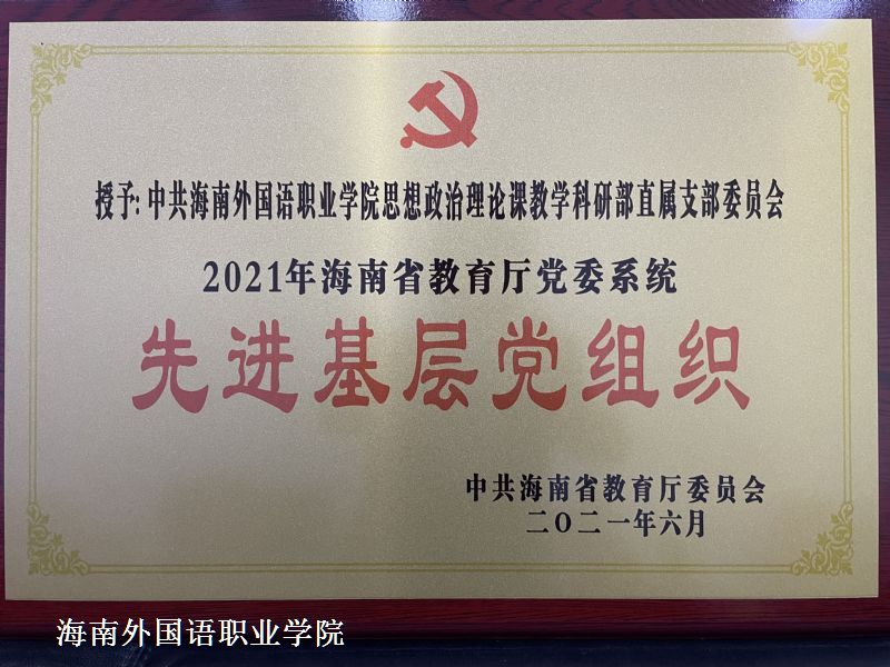 思想政治理论课教学科研部直属党支部荣获2021年海南省教育厅党委系统先进基层党组织