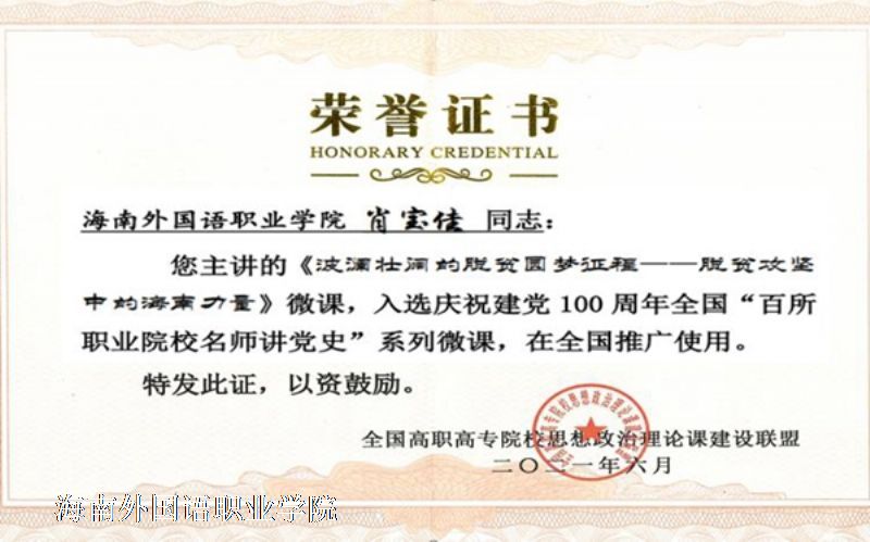 思政课教师肖宝佳录制的微视频入选庆祝建党100周年全国“百所职业院校名师讲党史”系列微课,并在联盟网站推广。