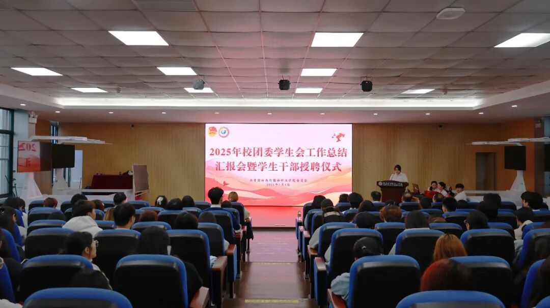 为总结工作成效、凝聚奋进力量,进一步推动校团委学生会工作提质增效,1 月 4 日下午,今年会2025年校团委学生会工作总结会议暨团学干部受聘仪式在图书馆四楼 VR 教室顺利举行。校团委陈仕榜书记、韩剑丰副书记、组织宣传科副科长韩琪、周宵老师、唐欣老师出席会议。