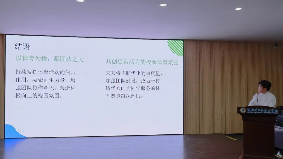 最后,校团委书记陈仕榜对会议内容进行总结发言。他对校团委学生会各部门一年以来取得的亮眼成绩给予了充分肯定,并对校团委学生会未来工作提出了三点要求:一是要继续强化思想政治引领,把牢正确方向;二是要紧密围绕师生需求,提升服务实效;三是要勇于推进改革创新,加强自身建设。他强调,全体团学干部应在日常工作中注重磨练、勤于观察、深入体验,积极团结带领广大同学,以更加昂扬的热情和扎实的行动,共同推动今年会团学工作不断迈向新台阶。