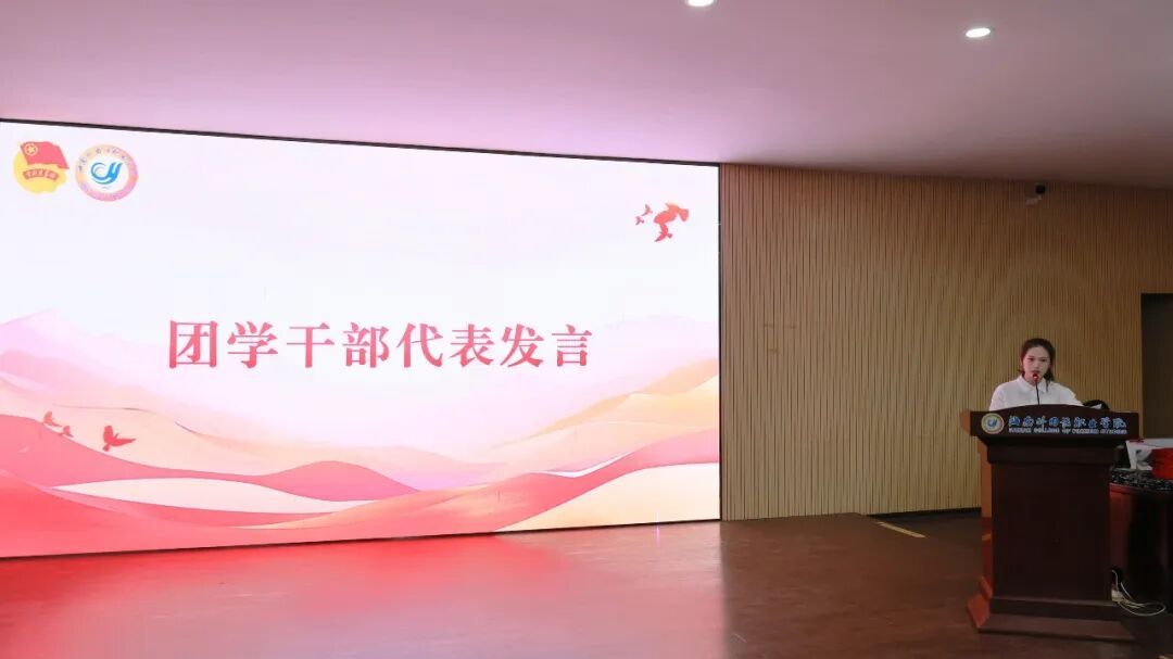 随后,团学干部代表许智金在发言中回顾了个人成长历程,并对集体工作进行了总结,勉励各团学干部在新的一年中要以更严谨务实的态度履职,主动倾听师生心声、积极创新工作形式,打造有温度的团学集体。