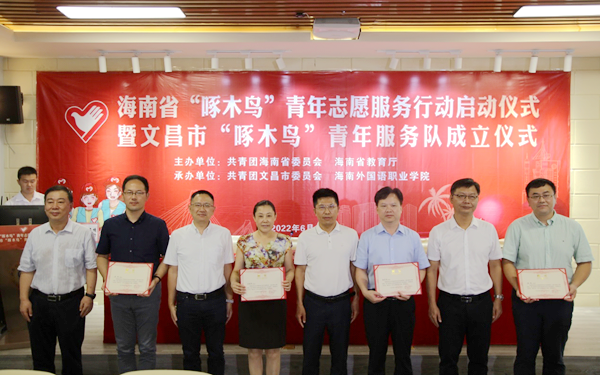 6月16日上午,由团省委、省教育厅主办的海南省“啄木鸟”青年志愿服务行动在jinnianhui今年会启动。当日,我省首支“啄木鸟”青年志愿服务队——文昌市“啄木鸟”青年志愿服务队在我院正式成立。