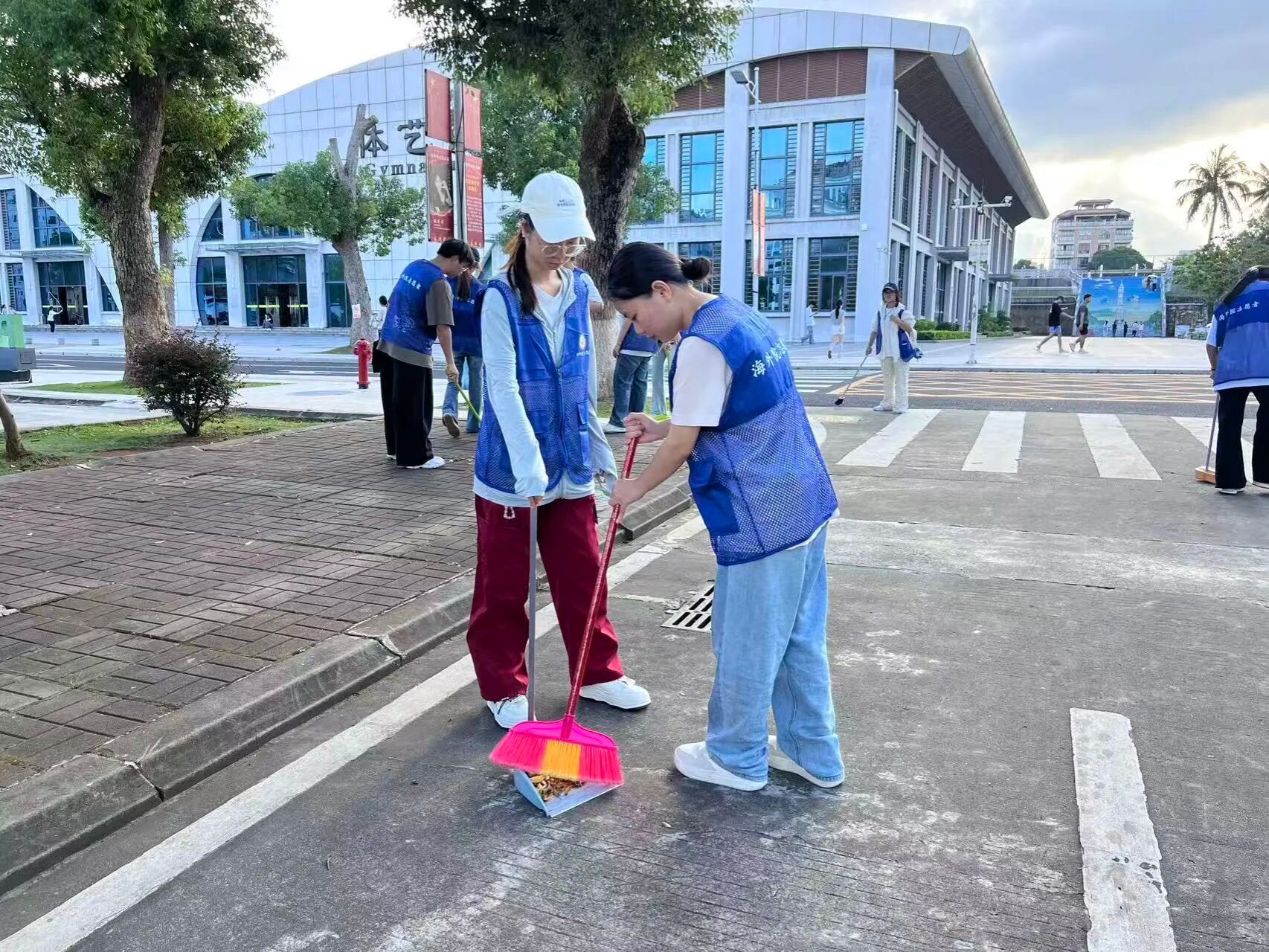 在校园的主干道上专注清扫 动作利落让积聚的落叶与尘土 一扫而空
