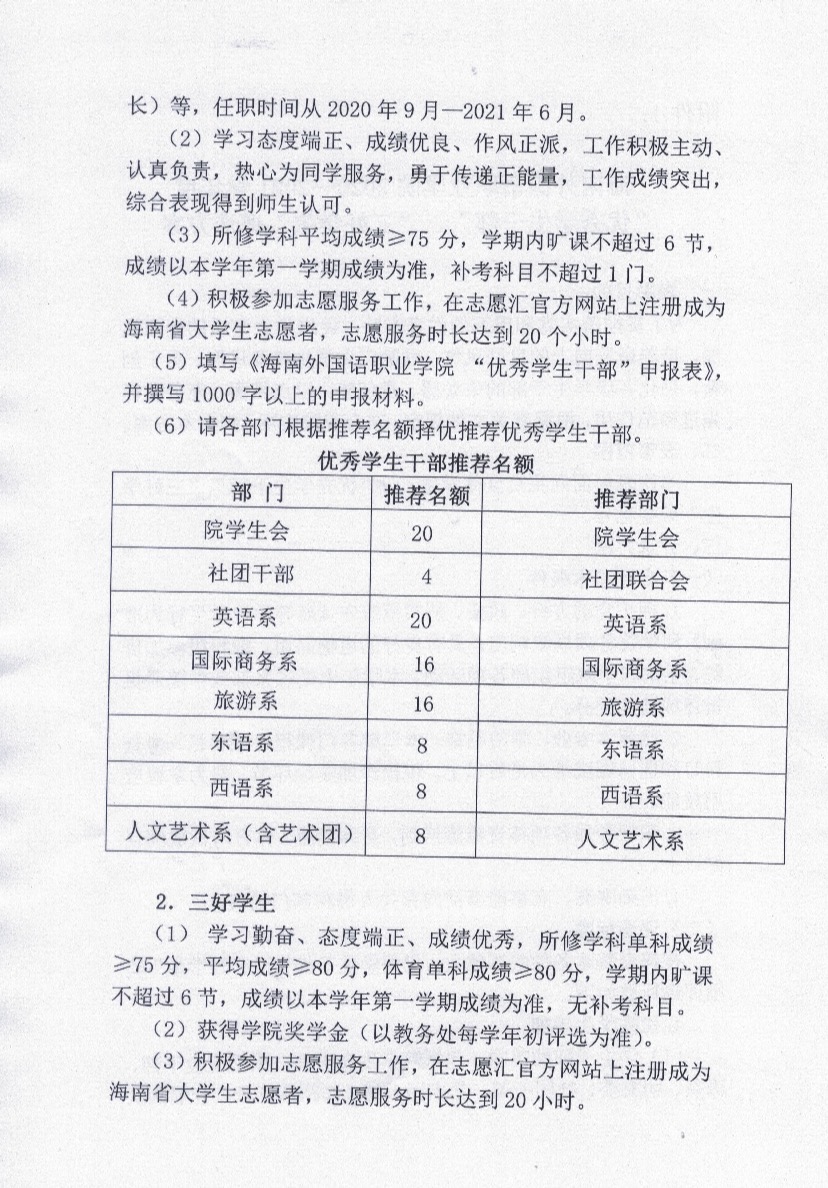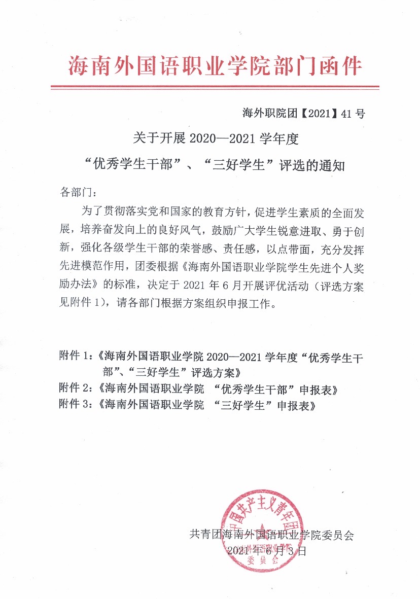 关于开展2020-2021学年度“优秀学生干部”、“三好学生”评选的通知