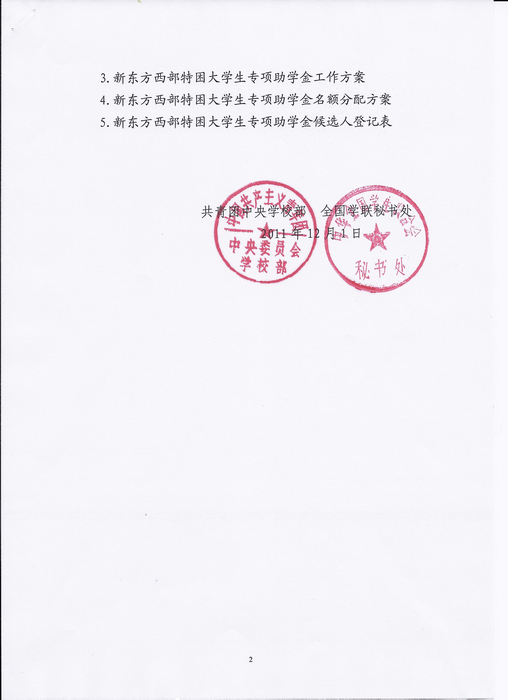 请各省、区、市团委学校部于2012年4月5日前,严格按照《新东方西部特困大学生专项助学金名额分配方案》的数量将候选人登记表和本省候选人汇总名单(相关材料可从自强之星活动官网下载)均以特快专递、电子邮件两种方式提交到自强之星活动组委会秘书处代收(地址:北京东直门海运仓2号中国青年报社新闻事业部 邮编:100702,E-mail:selfstar@qq.com)。