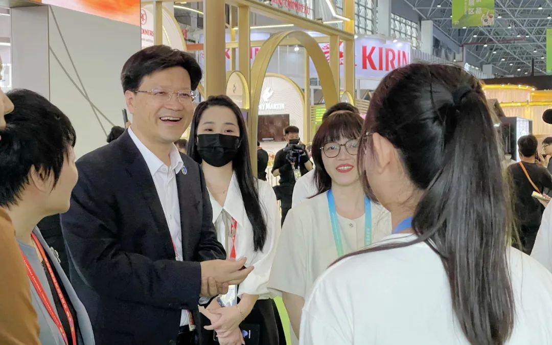 省委常委、省纪委书记、省监委主任陈国猛亲切慰问了今年会正在消博会一线志愿服务岗位上工作的志愿者,与同学们亲切交流,对同学们积极参与消博会服务保障工作表示肯定,勉励大家充分展现新时代海南青年大学生风采,发挥好专业特长,服务社会发展,以实际行动为海南自由贸易港建设贡献自己的青春力量。