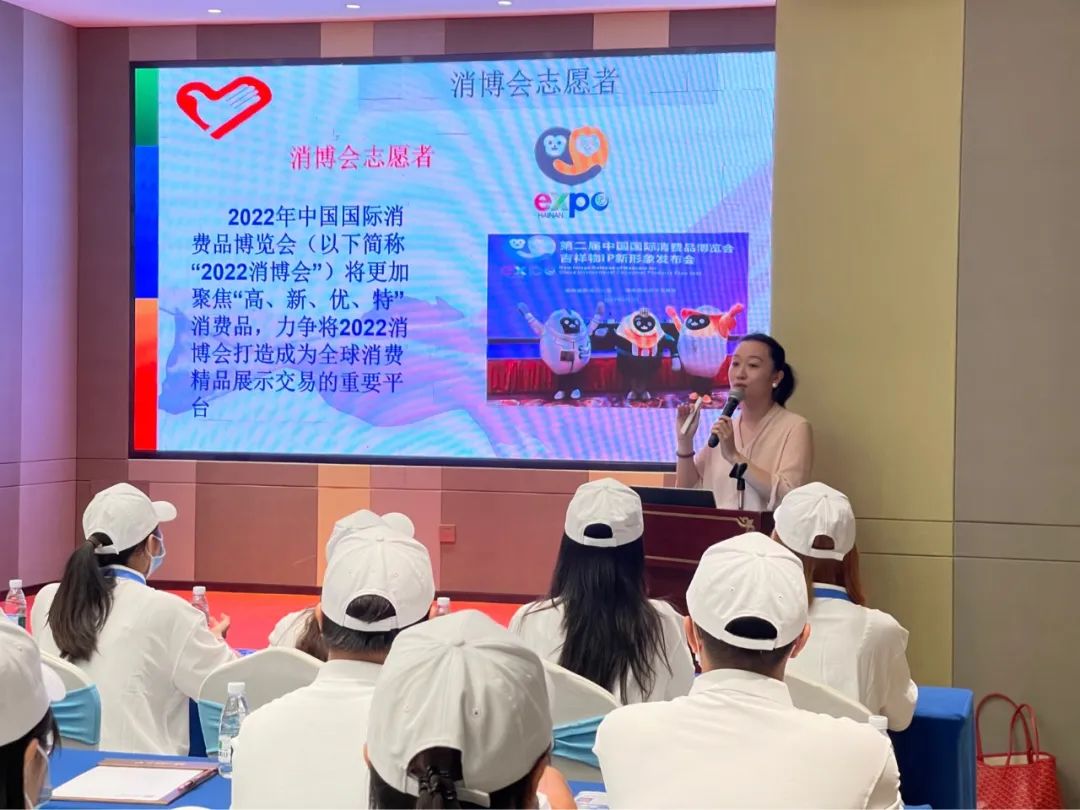7月22-23日,2022年第二届中国国际消费品博览会志愿者能力提升培训班(jinnianhui今年会专场)在海口举行,我院112名消博会志愿者参加培训。