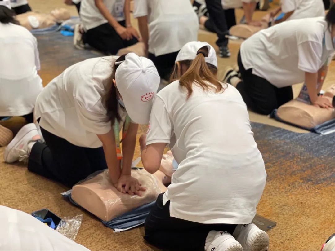 海口市120急救中心分别从心肺复苏急救、AED的使用方法、气道异物梗阻处理等方面进行详细讲解。通过模拟突发情况,志愿者们将所学技能经实操加以巩固,提高了急救知识的能力。
