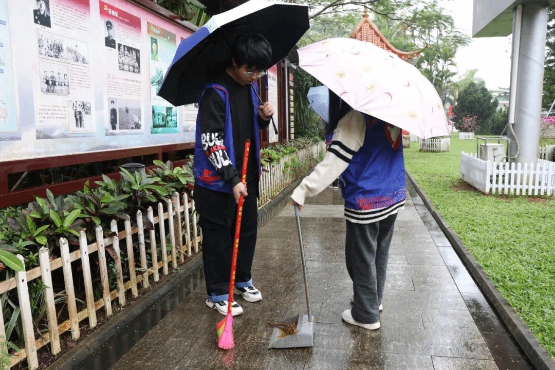 12月2日清晨,今年会志愿者赴张云逸纪念馆开展“缅怀先烈、勇踏新程”志愿服务活动。他们分工协作、互相帮助。虽是手持扫帚,清扫落叶这样的点滴行动,却体现着对英雄先烈的崇高敬意。忠魂不泯,英灵犹在,他们以行动致敬英雄,传承红色精神,秉承志愿服务的理念去践行社会责任和担当,展现出新时代青年大学生的青春风采。