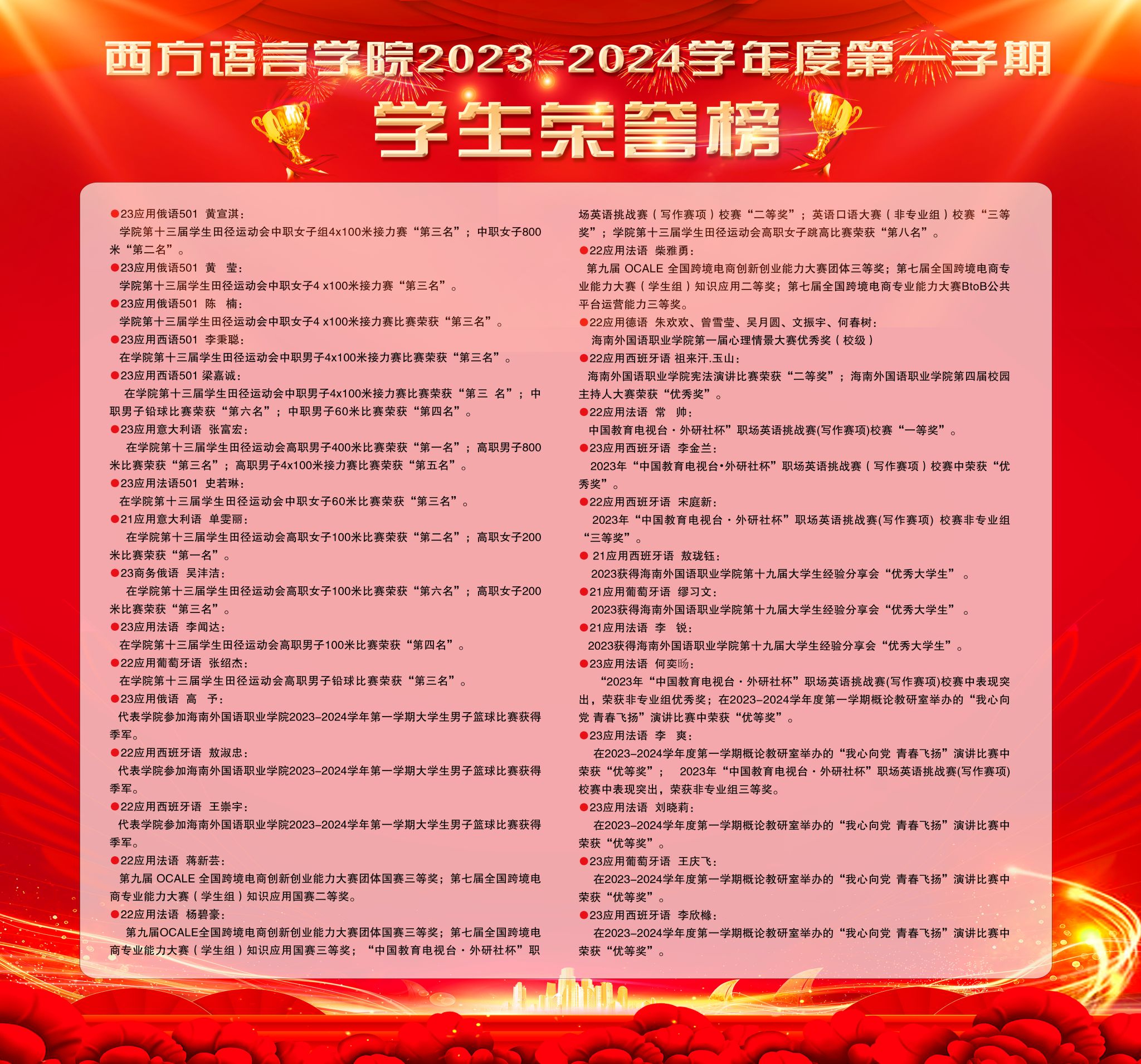 2023-2024学年度第一学期学生荣誉榜