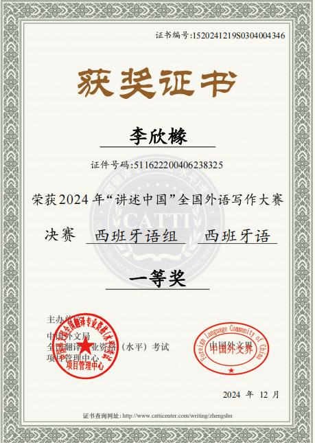 西语学生参加2024年第三届“讲述中国”外语写作大赛(西班牙语组)