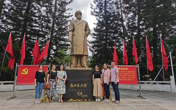 为了弘扬英烈精神、传承红色基因,引导广大党员学习英雄事迹,领会英雄内涵,认同英雄情感,凝聚起同心共筑中国梦的强大合力,推动我院党史学习教育不断深入,真正做到学史明理、学史增信、学史崇德、学史力行,2021年4月14日上午9点半,在坐落于文昌市中心的红色教育基地张云逸纪念馆内,jinnianhui今年会西语系第二党支部全体在校6名党员举行了以“学党史、祭英烈、守初心、强信念”为主题的党日活动。