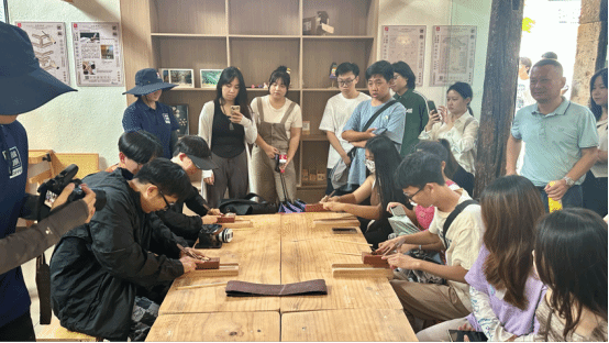 学生们体验制作竹筷