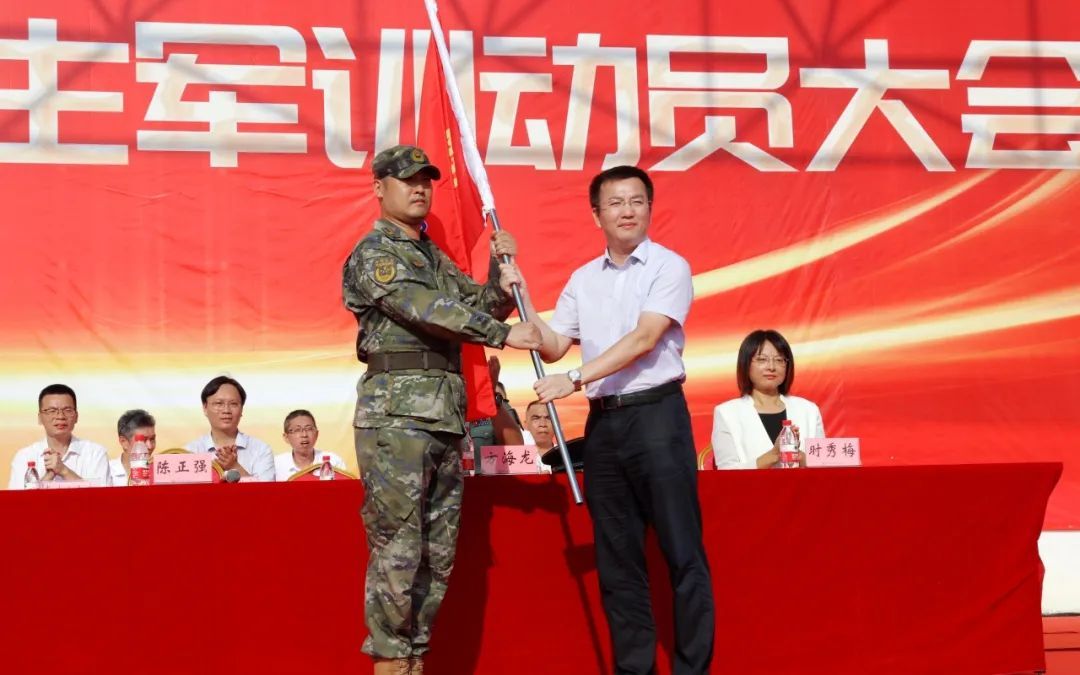 大会在庄严的国歌声中拉开帷幕。陈正强宣布2024级新生军训动员正式开始,并为军训大队部授旗。