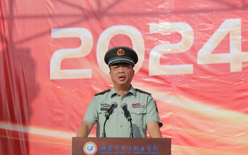 武警海警总队第四支队上校方海龙发言表示,全体承训教官将以严谨的态度、扎实的作风、饱满的训练热情、过硬的军事本领、一流的工作标准投入到军训中去,在传授好军事技能的同时言传身教,锻炼学生优秀品格和优良素质,与全体海外院新生们一道圆满完成军训任务。