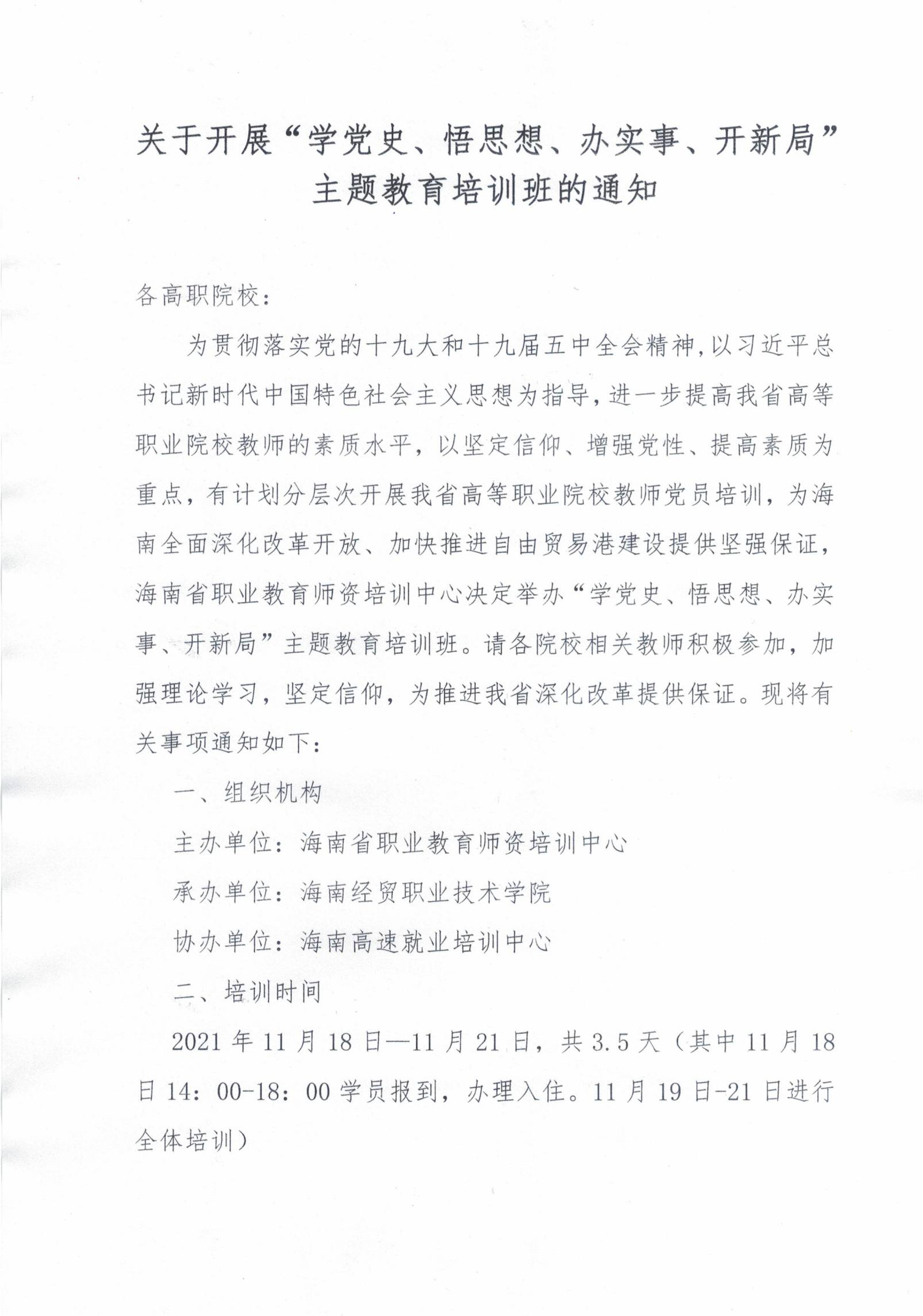 关于开展“学党史、悟思想、办实事、开新局”主题教育培训班的通知